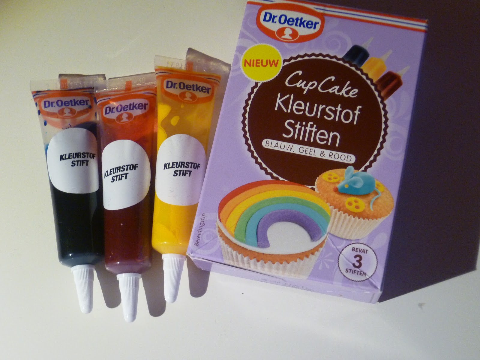 Je kunt de rolfondant ook kleuren in verschillende kleuren met Dr. Kleurstof Stiften Deze kleurstof stiften in de kleuren roo . Oetker gebruikt heeft is een natuurlijke kleurstof, gemaakt uit ijzerpoeder. Deze kleurstof geeft het beslag dan ook een . Oetker Cupcake kleurstof stiften (gram).